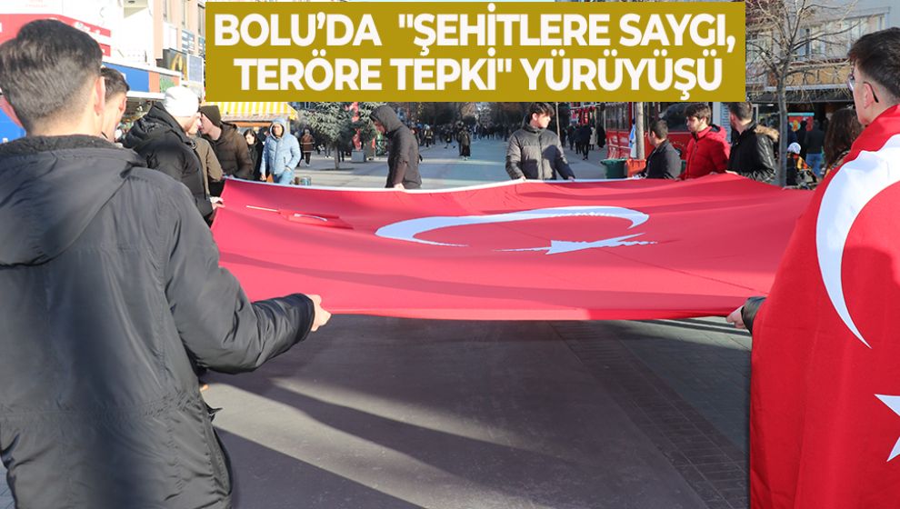 Kent Meydanı'nda toplanan Bolu Abant İzzet Baysal Üniversitesi öğrencisi bir grup, Türk bayrağı eşliğinde İzzet Baysal Caddesi'nden yürüyüş başlattı.