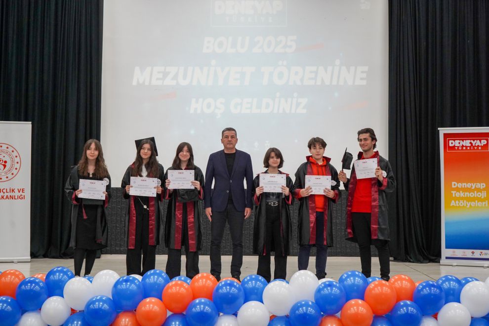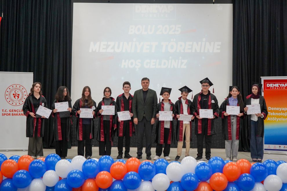 Bolu Bilim ve Sanat Merkezinde gerçekleşen programa Bolu Gençlik ve Spor İl Müdürü Emrullah Güler, İl Milli Eğitim Müdürü Fatih Öncü ve KOSGEB İl Müdürü Arif Ercan ile birlikte öğrenciler ve veliler katıldı. Gençlerin teknoloji ve inovasyon alanında attıkları bu önemli adımlar, geleceğin Türkiye’sine umut ve ilham kaynağı olmaya devam edecek. Mezun olan öğrenciler, üç yıllık eğitim süreçlerinin ardından proje üretimi ve takım çalışmalarıyla edindikleri bilgi ve becerileri sergileme fırsatı buldu.