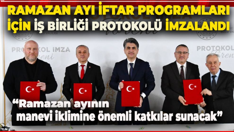 Valiliğimizin koordinesinde Bolu İl Milli Eğitim Müdürlüğü, Türkiye Diyanet Vakfı Bolu Şubesi ve Yıltaş Vakfı arasında, 2026 Ramazan ayı boyunca iftar programlarının düzenlenmesine yönelik iş birliği protokolü;Valimiz Sayın Abdulaziz Aydın'ın başkanlığında, Yıltaş Vakfı Yönetim Kurulu Başkanı Emre Yıldırım, Bolu İl Müftüsü ve Türkiye Diyanet Vakfı Bolu Şube Başkanı Hüseyin Demirtaş ile Bolu İl Milli Eğitim Müdür V. Yasin Yeşil tarafından imzalandı.