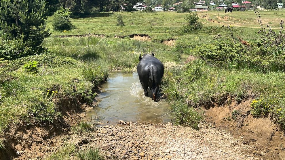 Ormana serinlemek için çıktığını belirten Enes Günaydın, "Şu anda At Yaylası'ndayız. Termometreler 30-31 dereceyi gösteriyor ancak hissedilen sıcaklık 40 dereceye yakın. Hayvanlar gölgelerde otluyor, sıcaktan bunalan mandalar derelere giriyor. Bizde serinlemek için ormanlara çıktık" dedi.