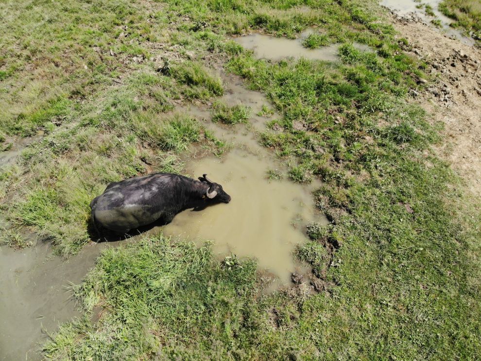 Termometrelerin 31 dereceyi gösterdiği ve hissedilen sıcaklığın 37 derecelere kadar yükseldiği Bolu'da serinlemek isteyen vatandaşlar ormanlık alanlara çıktı. Bolu'nun yüksek rakımda bulunan yaylalarından biri olan At Yaylası'nda ise sıcaktan bunalan mandalar serinlemek için çareyi çamur banyosu yapmakta buldu. Mandaların çamur banyosu dron ile havadan görüntülendi.